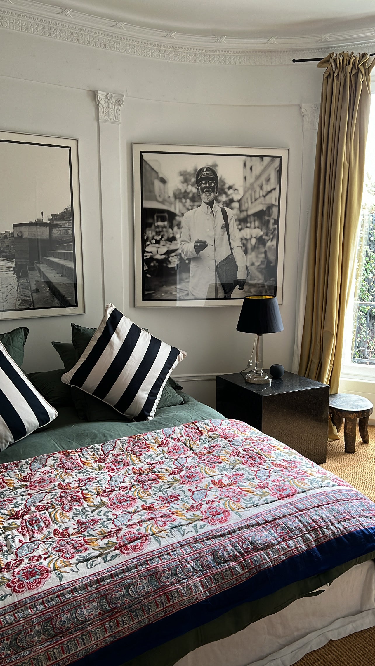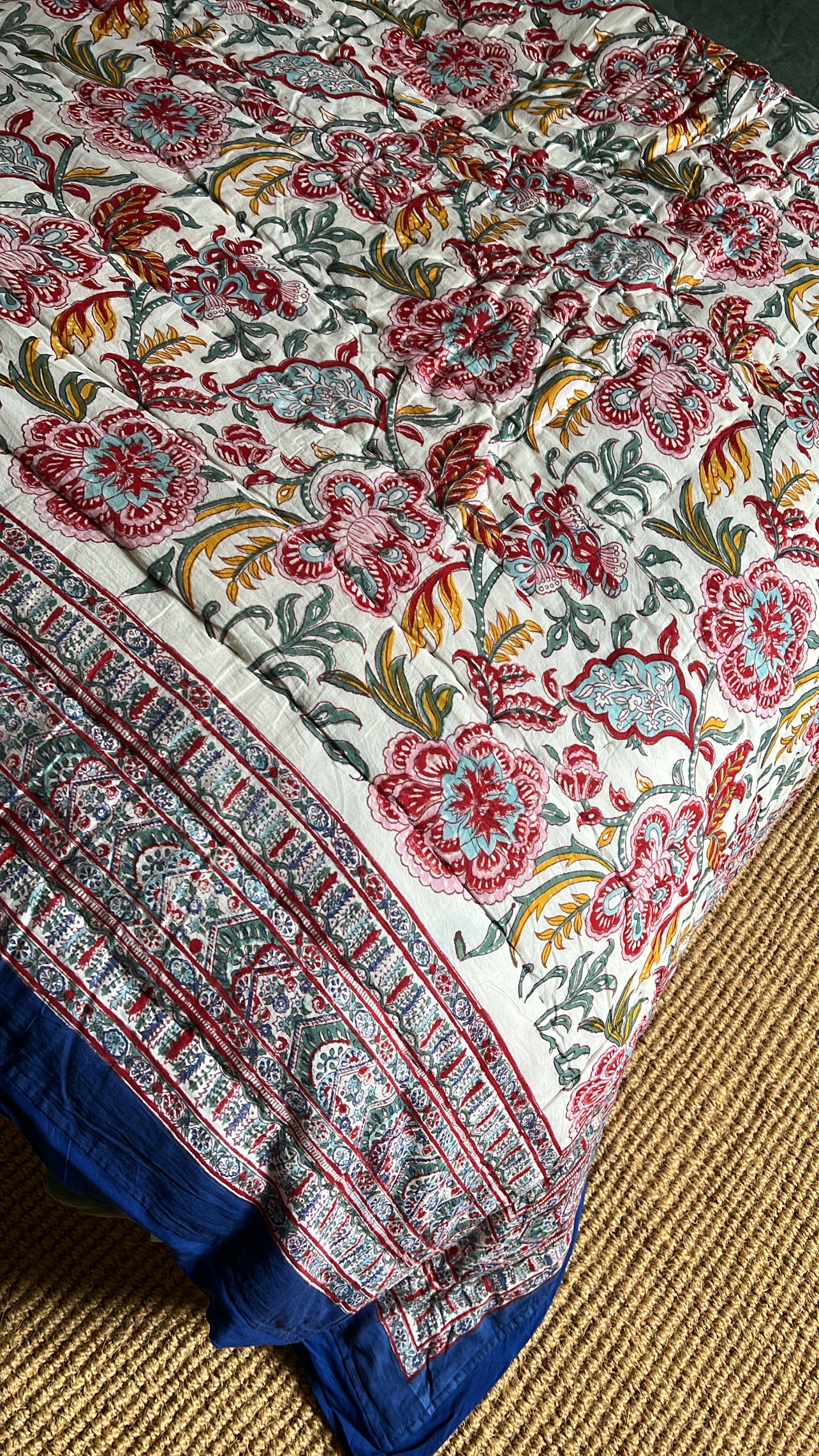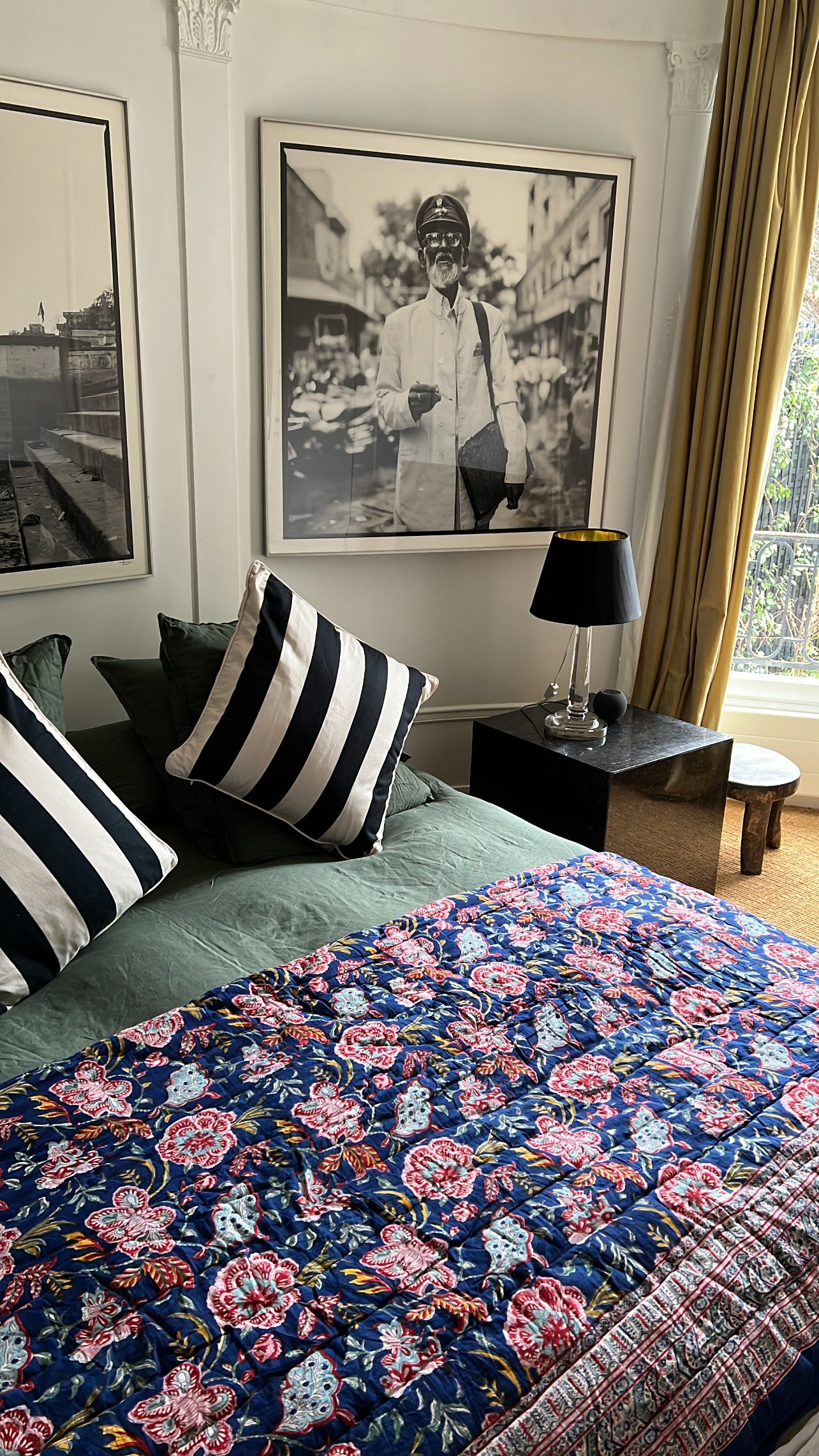 Le couvre-lit Udaipur est notre plaid matelassé réversible avec deux imprimés différents.